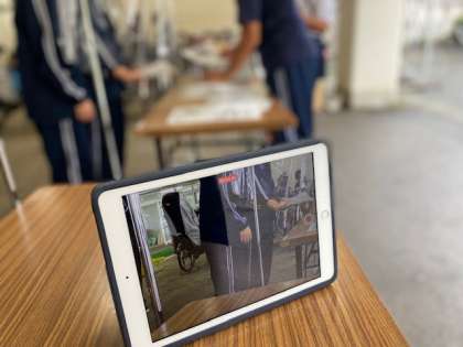 どの班も良いタイミングでタブレットを活用し、また班員全員が体験できるよう交代で撮影を行っています。