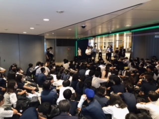 無事全員が揃い、出発式をしています。修学旅行スタートです。