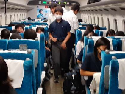 14号車には一般の方々も乗車しています。公共のマナーを意識した行動をしています。
