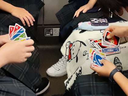 今年は座席を回転することが3年ぶりにできるようになり、トランプやウノで盛り上がっています。