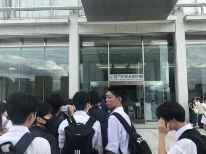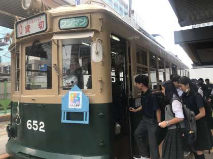 路面電車に乗り込み、これからCEF組は平和記念資料館の見学です。