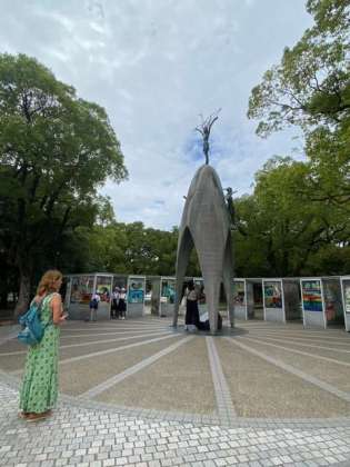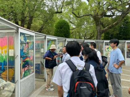 原爆の子の像の所にある折り鶴ブースにI組の生徒みんなで作った千羽鶴を奉納しました。