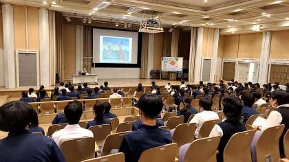 平和記念資料館にて被爆の体験者である梶本さんより講話をいただいています。