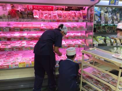 シミズヤさんでは、生肉の作業や、惣菜の作業を体験させていただきました。お肉にラップをかける作業や、何種類ものからあげに値札を貼ったりしました。