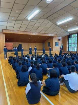 【2学年】学年朝礼 音楽祭実行委員 公開日 2023/09/21 更新日 2023/09/21 おしらせ 今朝の学年朝礼は、音楽祭実行委員が主体となって実行委員一人ひとりが音楽祭への意欲を語り、演奏順を発表しました。 いいね(0)