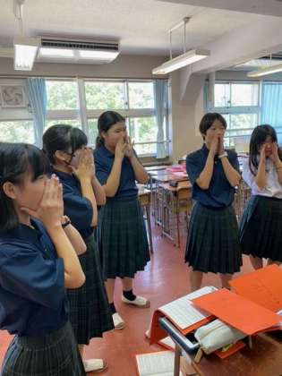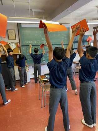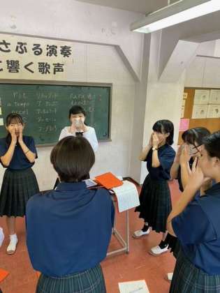 音楽祭も1ヶ月前に近づいてきました。1年生は身体を使ってたっぷり息を吸う練習をしています。また、口が横に広がり過ぎないように手で押さえて、歌っています。