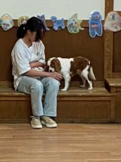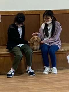 犬たちとの触れ合いを楽しんでいます。