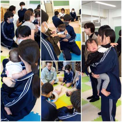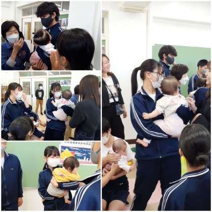 今年も地域のお母さんと生後1歳前後の赤ちゃん?が家庭科室に来てくれました。