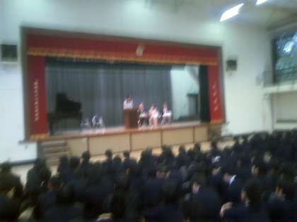 平成24年度離任式が行われました。4名の先生が来校され、生徒との最後の別れを惜しまれていました。