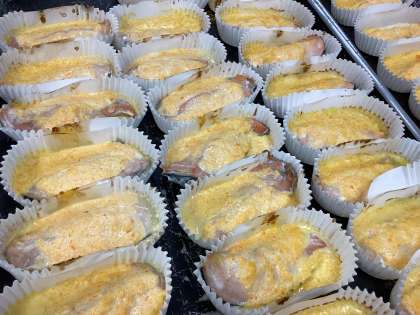 鮭のもみじ焼きは、すりおろしたにんじんとマヨネーズ、ヨーグルトを合わせたソースをかけて焼いた料理です。にんじんのオレンジ色がもみじの色のようにみえることがこの名前の由来です。