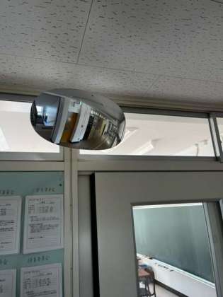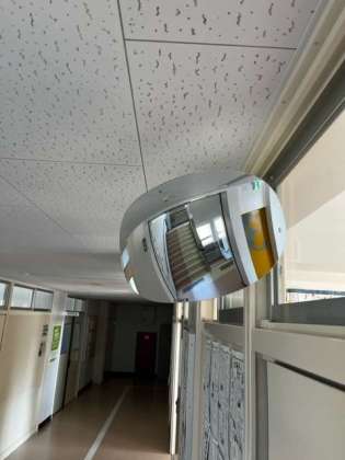 校舎内東階段2階、3階と2階理科室の角にカーブミラーが設置されました。