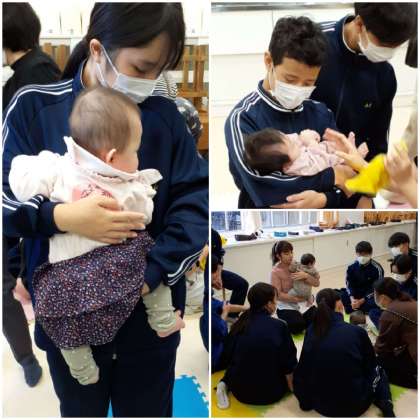 将来、今の3年生の中に保護者としてこのような体験に自分の赤ちゃんを連れて来てくれることもあるかもしれません。そして、抱っこしてもらう上中生が今回の赤ちゃんかもしれませんね。そう考えると地域や命の繋がりを感じます。