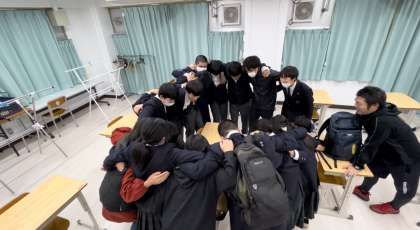 その前日にI組全員で円陣を組みました。「3年生頑張るぞー!」のかけ声のあとみんなでハイタッチをしています。とてもいい雰囲気でした。