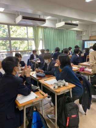 社会科の先生から「戦争はいつ終わったのだろう」というタイトルで、平和についてのお話がありました。
