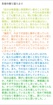【全学年】オリパラ教育 振り返り 公開日 2023/12/15 更新日 2023/12/15 おしらせ 昨日の講演会のふりかえりを、本日の朝の時間に行いました。多様性を理解しようと努める態度が素晴らしいですね! いいね(0)