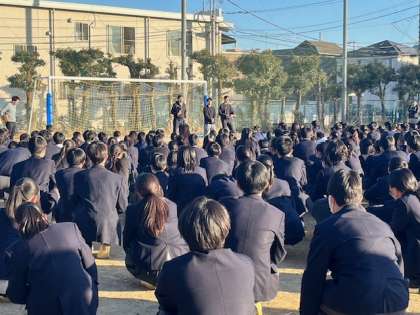 緊急地震速報の音源を使用し、地震発生から火災発生を想定しての訓練でした。火災発生は生徒は知らないでの訓練でしたが、各自が避難経路を考え、混乱することなく訓練できました。