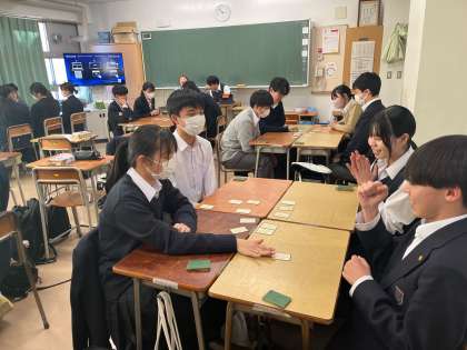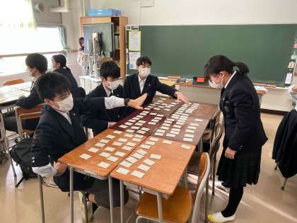 総合の時間に各クラスで百人一首を行いました。