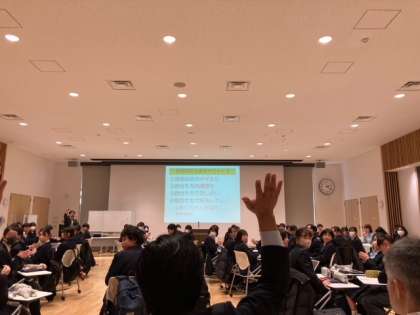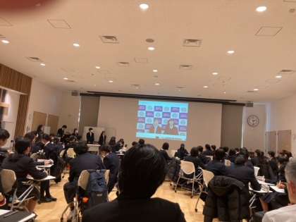 ?本日、教育総合センターで生徒会サミットがありました。各校、「こんな学校にしたい3ヶ条」を考え、動画にまとめました。本校の動画は1ブロックの代表に選ばれたので、本日発表しました。