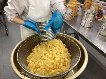 今日の献立のフルーツポンチは、1年生のリクエスト給食です。