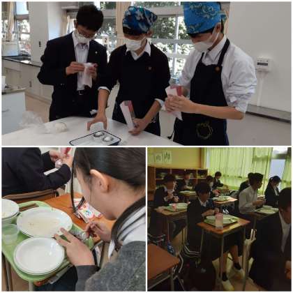 F組は給食の完食率も毎日100%です。 そして、デザートに今日は作ったケーキも美味しく頂きました。