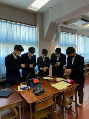 グループでのラップ創作に挑戦しています。自分たちオリジナルの作詞作曲は、本当に楽しそうです。