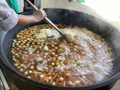 もち入りみぞれ汁は、白玉粉と豆腐で作った手作り白玉もちと大根おろしが入ったすまし汁です。豆腐を混ぜて作った白玉もちは柔らかい食感が好評でみんなよく食べてくれていました.