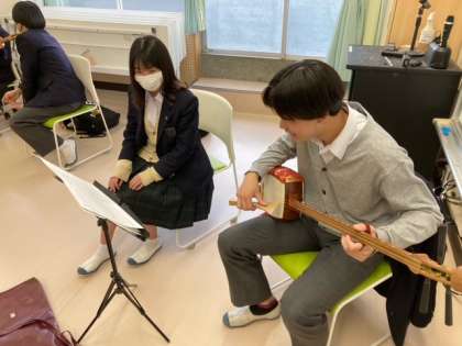 【2学年】日本文化体験 邦楽 公開日 2024/03/08 更新日 2024/03/08 おしらせ 三味線に挑戦です。 始まって20分、1曲目をもう弾けるようになりました。 [image1.jpeg][image2.jpeg] いいね(0)