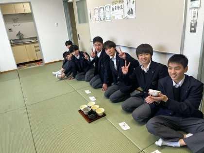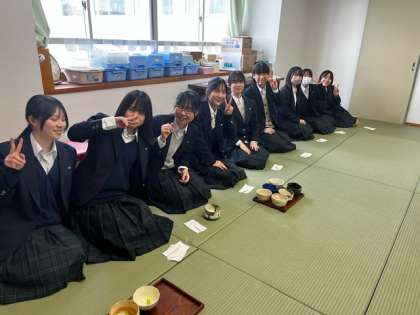 上祖師谷中学校の国語科であり、茶道部の顧問をしていただいている早川先生と茶道部で指導してくださっている山浦先生に講師として茶道を教えていただきました。