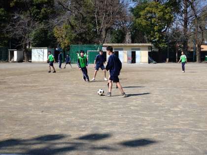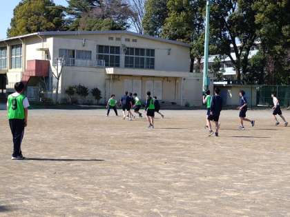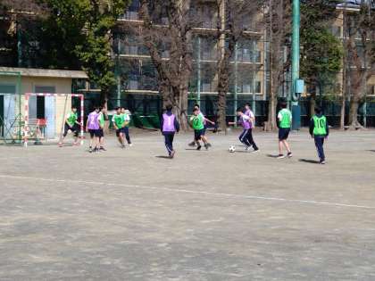 男子は、各クラスを2つに分けて、サッカーをやっています。