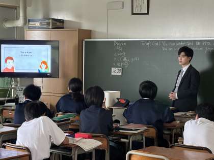 this〜 公開日 2024/05/31 更新日 2024/05/31 おしらせ 1年生の英語の授業の様子です。 今日はbe動詞について学習していました。 また、板書には今日の授業の流れも示され、その時間で行う内容がすぐに分かるようにもなっていました。 「this is 〜」「He is 〜」等 繰り返しアウトプットすることで、日常的に様々なことを英語で表現できるようになっていってほしいと思います。 いいね(0)