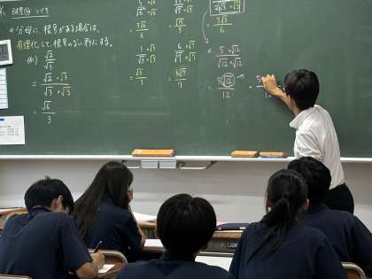 ルート 公開日 2024/06/13 更新日 2024/06/13 おしらせ 3年生の数学の授業の様子です。 今日の授業のねらいは「分母を有理化してルートをなくす!」でした。 ※有理化とは、無理数を有理数に変える、という意味です! (保護者の皆様は覚えていらっしゃいますか?) しっかり意味を理解して、活用できるようになってほしいです。 いいね(0)
