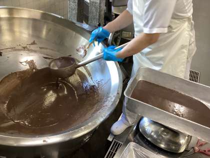 6月16日は「和菓子の日」です。和菓子は季節感を大事にし、年中行事や人生の節目、家族や地域の絆に深く関わる食べ物です。少し早いですが、和菓子の日にちなんで今の季節にぴったりの涼しげな和菓子「水ようかん」を、給食室で小豆から炊いて手作りしました。