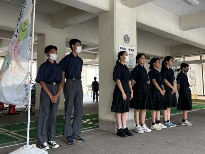 今日はあいにくの激しい雨でしたが、ボランティアの生徒たちは、一人一人にとても丁寧に「おはようございます!」と挨拶をしていました。