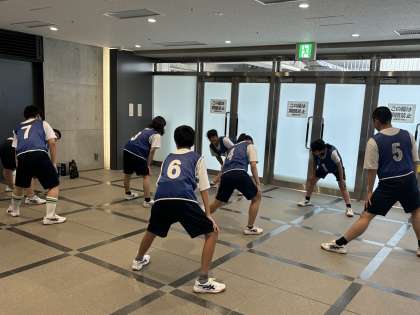 準備体操をして、体をほぐしています!