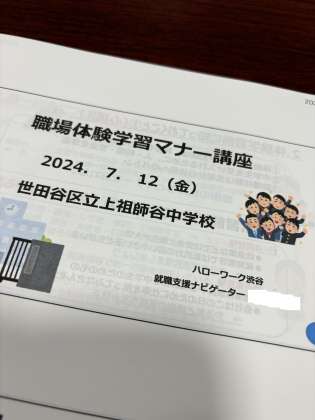 2年生が職場体験学習に向けて、ハローワーク渋谷より講師をお招きして、マナー講習を行いました。