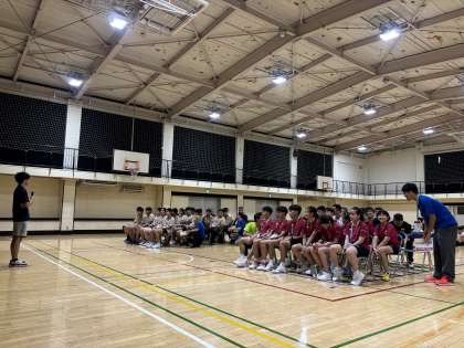 2024ジュニアスポーツアジア交流大会のバドミントン、卓球に出場する、バンコクとシンガポールの代表選手が上祖師谷中学校に来校しました。