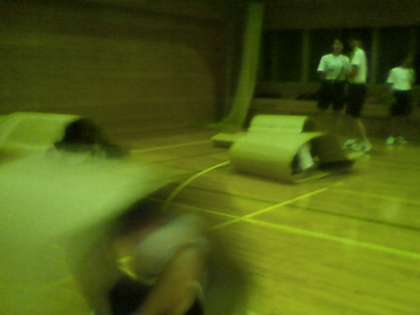 2日目のレクは、障害物リレーです。レク係のユニークな発想で9っの種目をクラス全員リレーして行きます。見事A組が優勝しました。とても盛り上がりました。