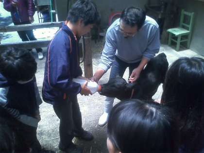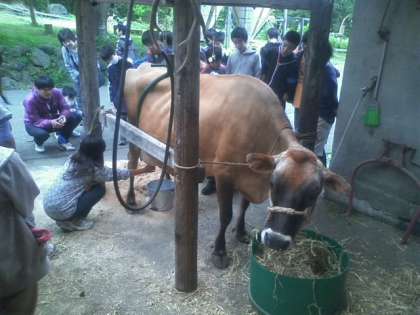 酪農体験では、牛の乳搾りやバターづくりを行いました。