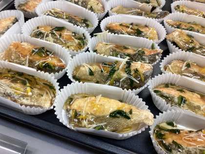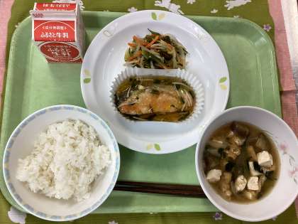 9月9日は「重陽の節句」で、菊やなすを食べる習慣があります。菊は邪気を祓い、長生きすると信じられてきました。なすは9のつく日に食べると病気になりにくくなるなどの言い伝えがあります。このことにちなんで、今日は菊となすを使った献立にしました。
