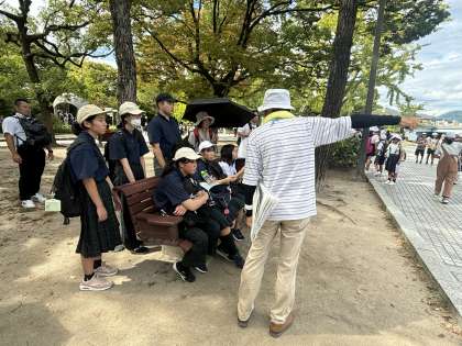 碑めぐりガイドの方のお話しを真剣に聞いている姿が印象的でした。