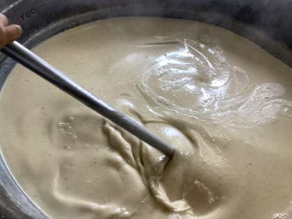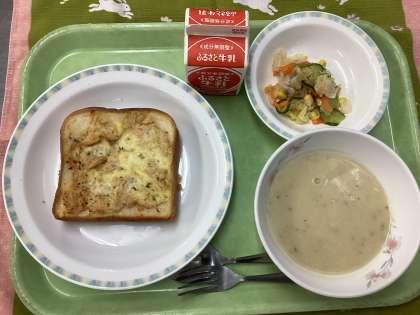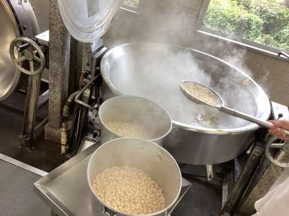 今日のスープは、白いんげん豆を柔らかく煮てミキサーにかけてポタージュスープにしました。白いんげん豆のペーストを豆乳でのばし、仕上げに生クリームと塩こしょうで味を整えて作ります。牛乳ではなく豆乳を使ったことで、豆の優しい味わいがより引きたちました。
