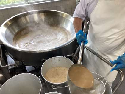 デザートのカフェオレゼリーは、コーヒーの粉を牛乳に溶かし、砂糖・生クリームを加えて寒天で固めてつくります。少しほろ苦い、大人な味のデザートです。