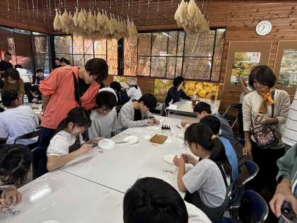 河口湖フィールドセンターで、押し花のキーホルダーを作りました。