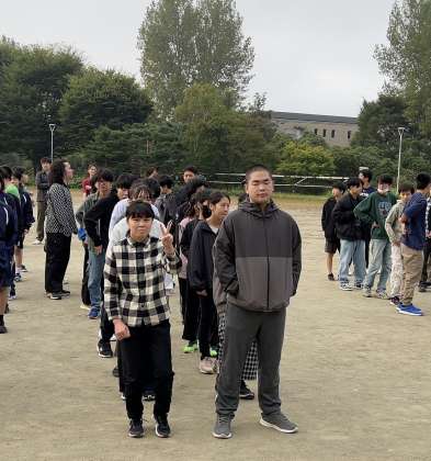 2日目を迎えました。全員が予定時刻に整列をし、朝礼を始めることができています。