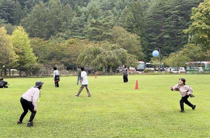 昼食後は、大広場でキャッチボールやドッチボールをして楽しみました。