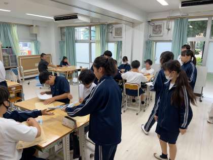 毎年I組では、新入生保護者会でお配りする資料の封入作業を行っています。