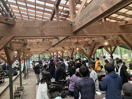河口湖はあいにくの雨模様ですが、参加生徒は全員元気に活動しています。