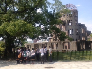 広島・平和記念公園にて、ガイドさんとの碑めぐりが始まりました。