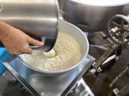 呉汁は、日本各地に伝わる郷土料理のひとつです。大豆をすりつぶしたものを「呉」といい、豆腐や肉類が貴重な時代に、タンパク質源として大豆をよく吸水させた後、柔らかく煮てすりつぶし、みそ汁に入れたのが始まりだそうです。給食では、ゆでた大豆をミキサーで細かくしたものを加えて作りました。