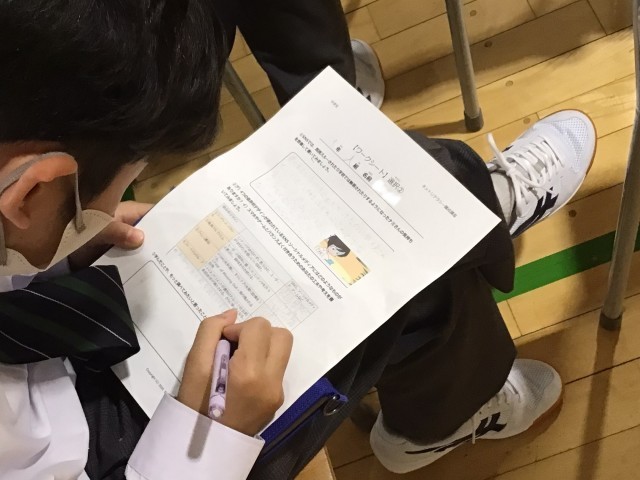 1年生は、一人一人、 真剣にワークシートを記入しながら聞いていました。